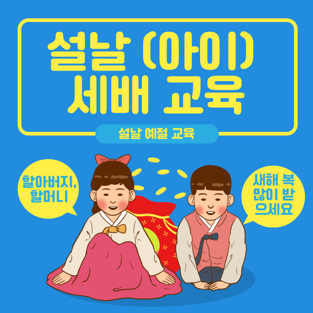 - 부모님, 형제자매, 조부모님과 함께 연습하면 아이들이 세배의 중요성을 더욱 느낄 수 있습니다.